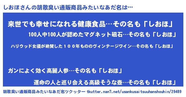 | ヘコむあだ名 | 『しおほ(笑)』『豆乳』『しおを』 |