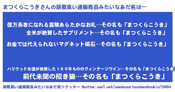 | ヘコむあだ名 | 『まつふぇ~』『まつくらこうき(震え声)』 |