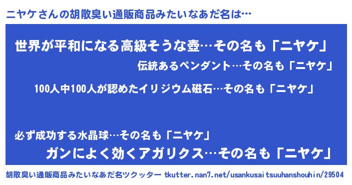 | ヒーロー風カッコイイあだ名 | 『正義の使者ニヤケ』『幻影騎士ニヤ』 |