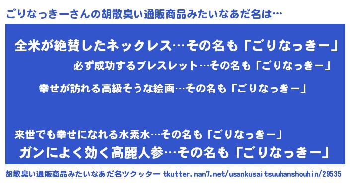 | 欧米人風あだ名 | 『ごりなっきークリステル』 |