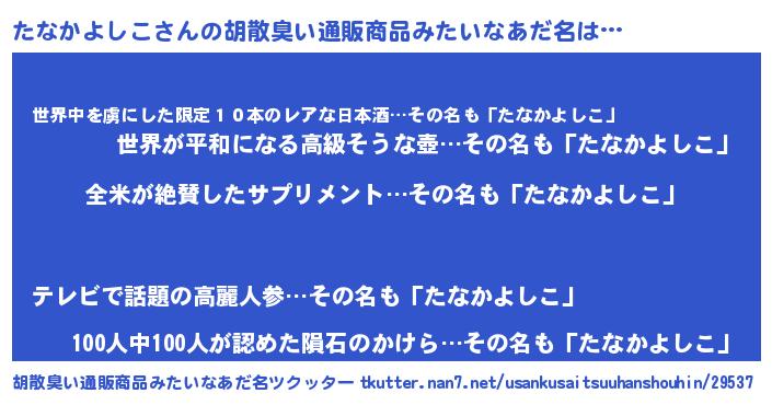 | 男性向けラノベタイトル風あだ名 | 『たなかよしこの嫁は女の子じゃないと思った?』 |