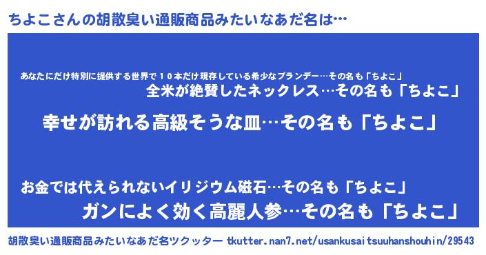 | 意味不明あだ名 | 『ちよこフォーエバー』『自称ちよこ』 |