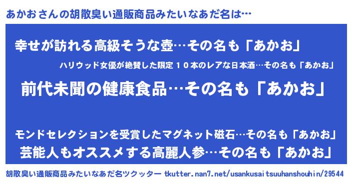 | 意味不明あだ名 | 『永久保存あかお』『あかおフォーエバー』 |