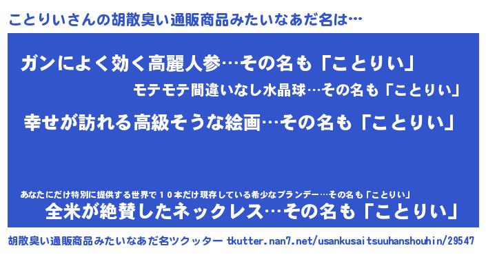 | 意味不明あだ名 | 『ことりいフォーエバー』『自称ことりい』 |
