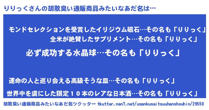 | 欧米人風あだ名 | 『マイケルりりっく』『ダニエルりりっく』 |