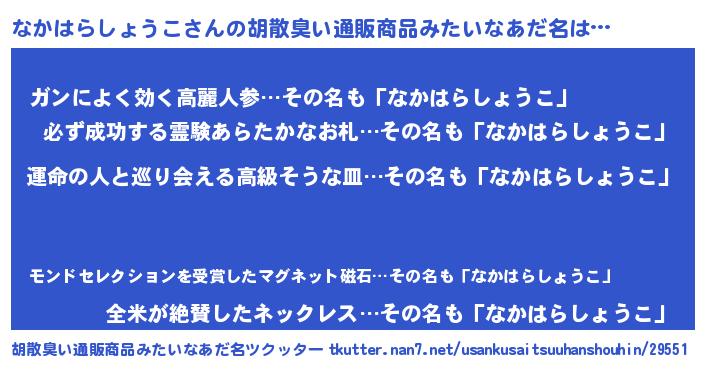 | 意味不明あだ名 | 『なかはらしょうこフォーエバー』 |