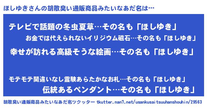| 女子向けラノベタイトル風あだ名 | 『ほしゆきの雑貨屋さん』『闇のほしゆき』 |