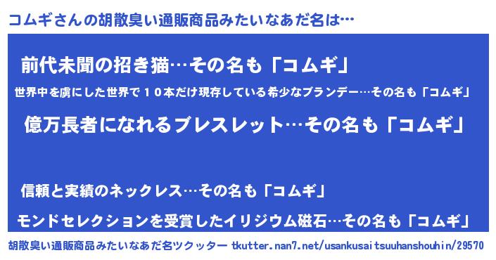 | 2回繰り返すあだ名 | 『コムコム』『ぎゃーぎゃー』 |