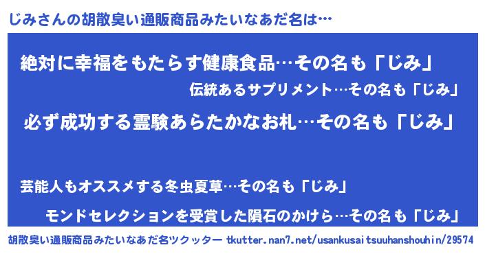 | 男性向けラノベタイトル風あだ名 | 『じみの憂鬱』『はたらくじみさま!』 |