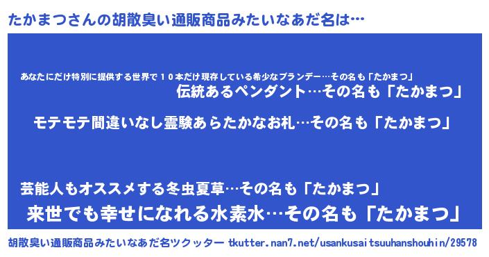 | ヘコむあだ名 | 『たかっふぃ~』『たかまつ(笑)』 |