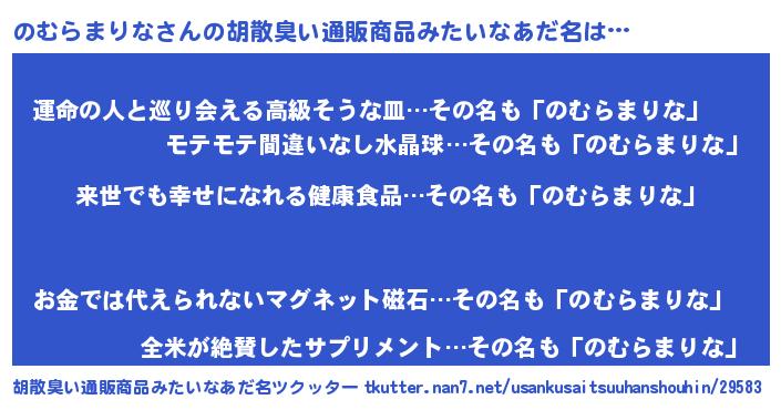 | ヘコむあだ名 | 『のむらまりな(笑)』『酢こんぶ』 |