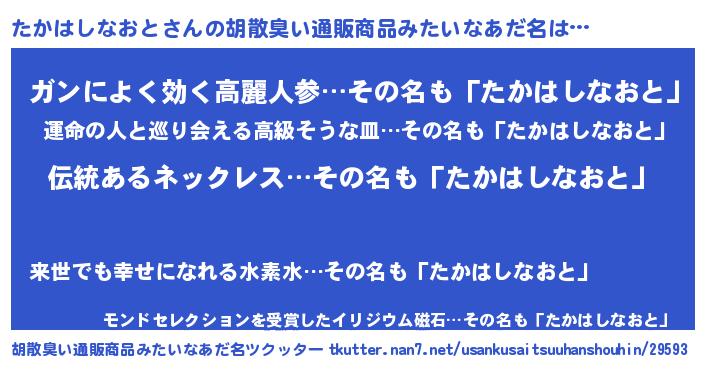 | 意味不明あだ名 | 『とにかく怪しいたかはしなおと』 |