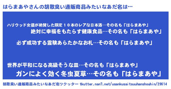 | 男性向けラノベタイトル風あだ名 | 『ハラマアヤスレイヤー』 |