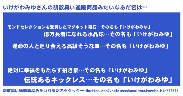 | 肩書あだ名 | 『いけがわみゆ国家主席』 |