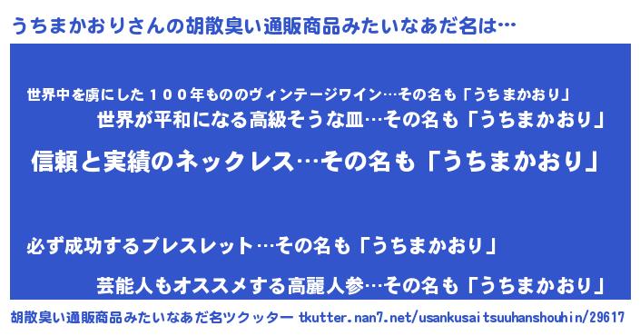 | 意味不明あだ名 | 『とにかく怪しいうちまかおり』 |