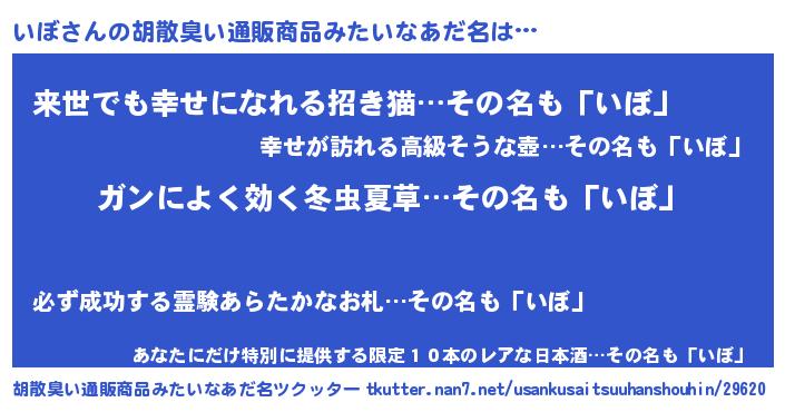 | ヘコむあだ名 | 『いぼ(震え声)』『豆乳』『いぼお』 |