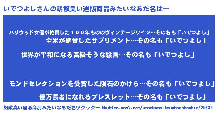 | 肩書あだ名 | 『いでつよし総理大臣』『いでつよし艦長』 |