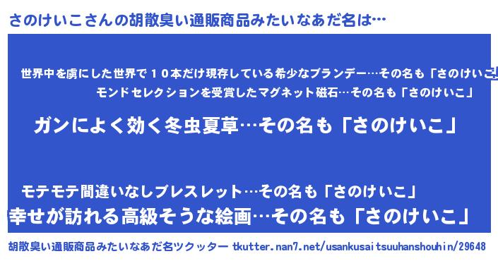 | 意味不明あだ名 | 『自称さのけいこ』 |