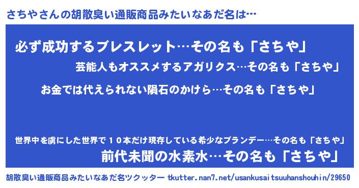 | ヘコむあだ名 | 『さちもー』『さちや(小並感)』 |
