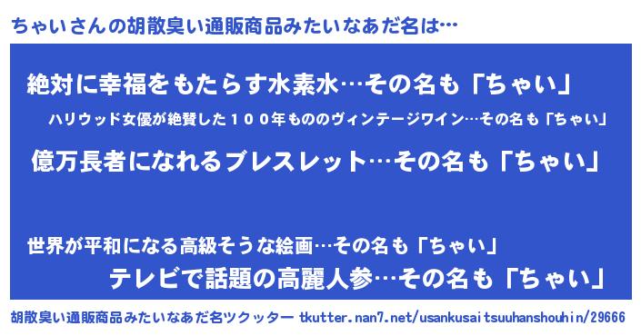 | 男性向けラノベタイトル風あだ名 | 『チャイアートオンライン』 |