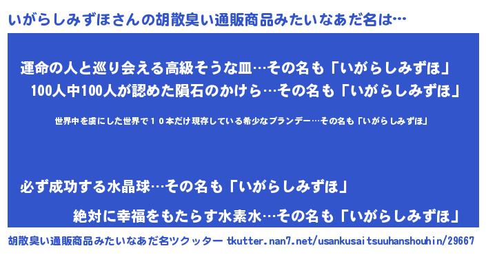 | 肩書あだ名 | 『いがらしみずほ少将』 |
