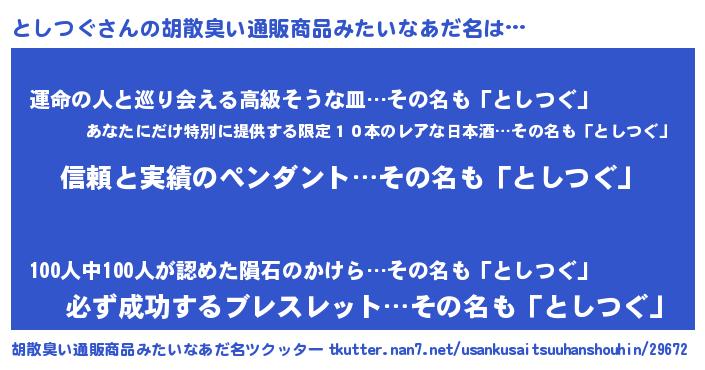 | ピコ太郎風あだ名 | 『トシ六郎』『ピト十郎』『トコ太郎』 |