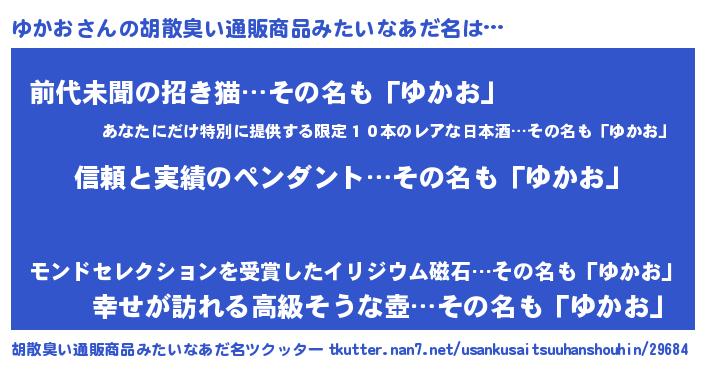 | ヘコむあだ名 | 『ゆかっちょ』『ゆかお(笑)』 |