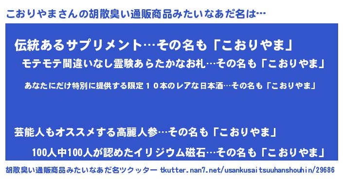 | 男性向けラノベタイトル風あだ名 | 『この素晴らしい世界にこおりやまを!』 |