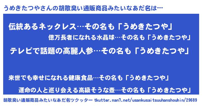 | 意味不明あだ名 | 『自称うめきたつや』 |