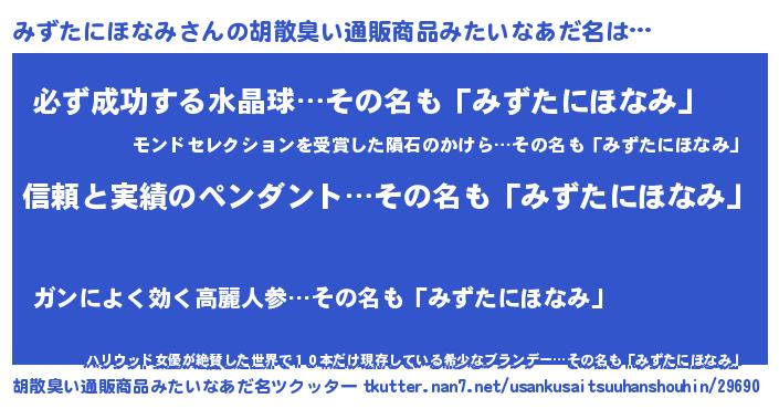 | ヘコむあだ名 | 『みずっぺ』『みずにゅー』 |