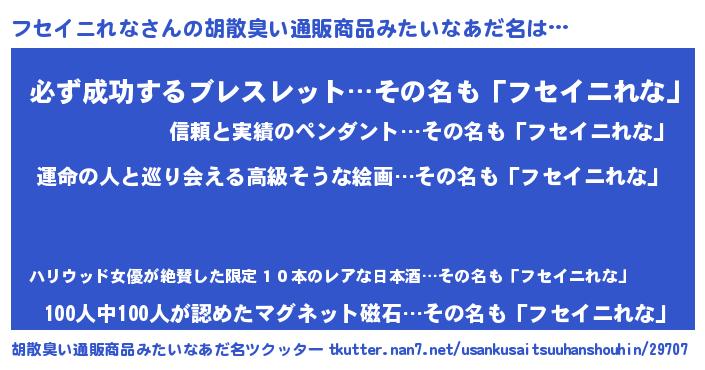 | 意味不明あだ名 | 『フセイニれなフォーエバー』 |