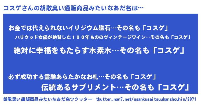 | ヘコむあだ名 | 『コスゲ(苦笑)』『コスぷりん』 |