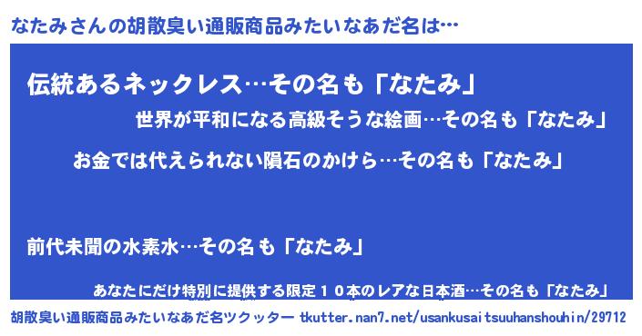 | ヘコむあだ名 | 『なたっちょ』『豆乳』『なたもー』 |