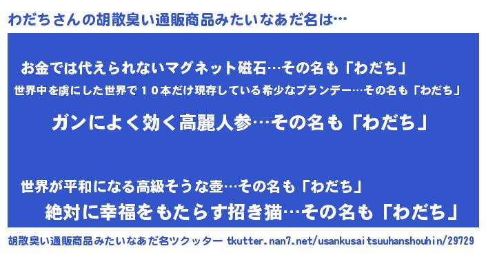 | ヘコむあだ名 | 『わだち(笑)』『牛乳』『わだ太郎』 |