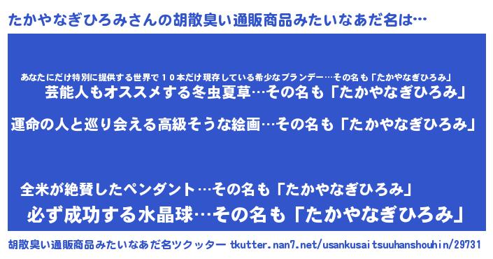 | ファンタジー風あだ名 | 『エターナルタカヤナギヒロミー』 |