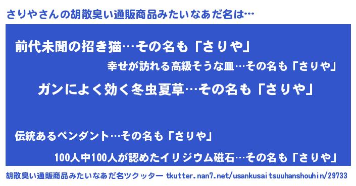 さりやさんの胡散臭い通販商品みたいなあだ名をツクッター!