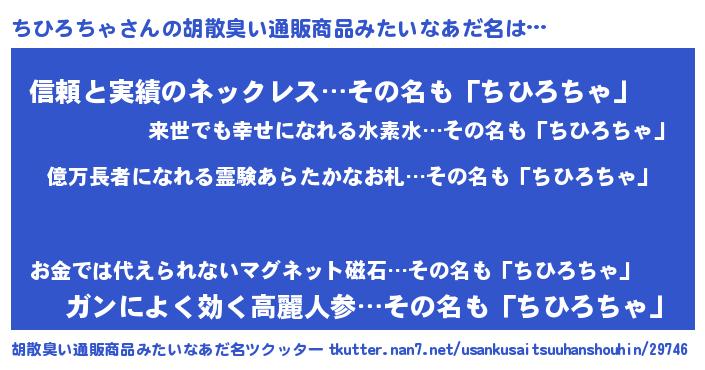 | 意味不明あだ名 | 『ペロリンちひろちゃ』『自称ちひろちゃ』 |