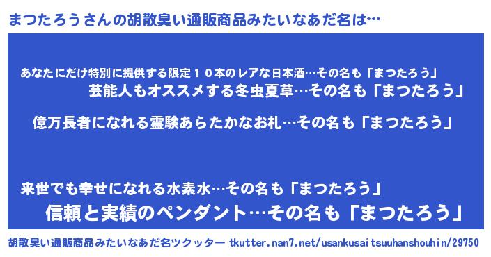 | ヒーロー風カッコイイあだ名 | 『スーパーマツタロウ』『仮面マツダー』 |