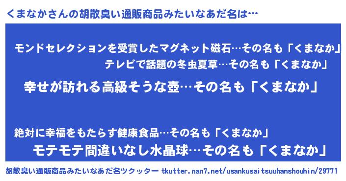 | 意味不明あだ名 | 『くまなかフォーエバー』『自称くまなか』 |