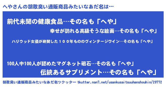 | ヘコむあだ名 | 『へや(小並感)』『へや太郎』 |