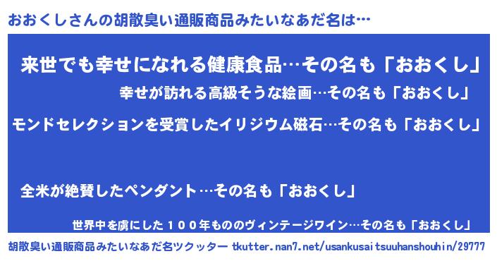 | 男性向けラノベタイトル風あだ名 | 『ノーゲーム・ノーオオクシ』 |