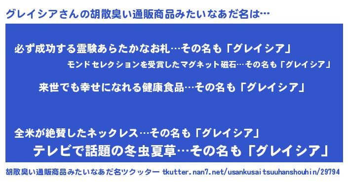 | ヘコむあだ名 | 『グレイシア(苦笑)』『グレにゅー』 |
