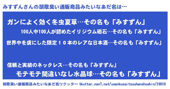 | 意味不明あだ名 | 『住所不定無職みすずん(39歳)』 |