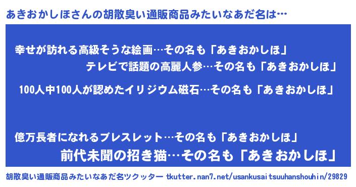 | ヘコむあだ名 | 『つくし』『あきおかしほ(爆)』 |