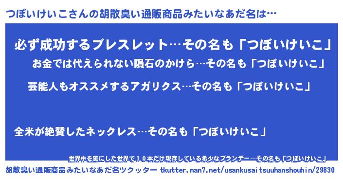 | 意味不明あだ名 | 『自称つぼいけいこ』 |
