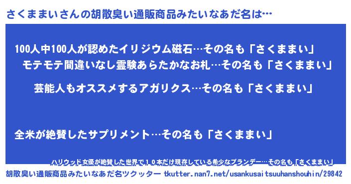 | 意味不明あだ名 | 『自称さくままい』『ペロリンさくままい』 |