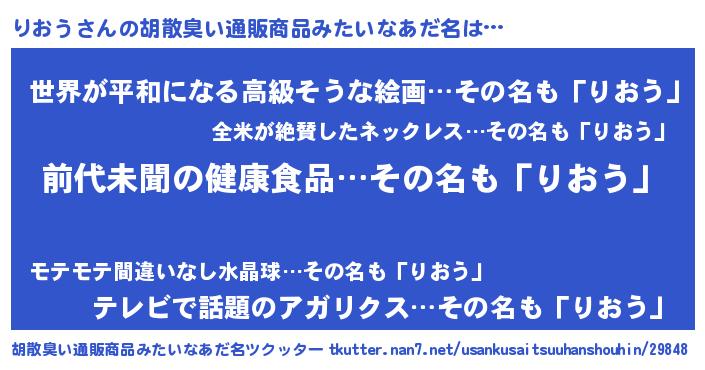 | ヘコむあだ名 | 『りおう(笑)』『豆乳』『りおっ子』 |