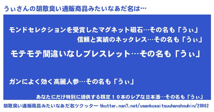 | ヘコむあだ名 | 『うぃふぇ~』『うぃを』『なまこ酢』 |