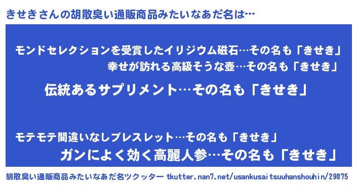 | 意味不明あだ名 | 『とにかく怪しいきせき』『自称きせき』 |