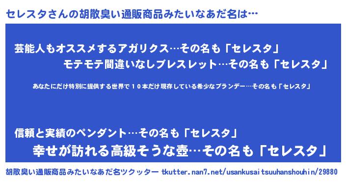| 欧米人風あだ名 | 『ダレノガレセレスタ』 |